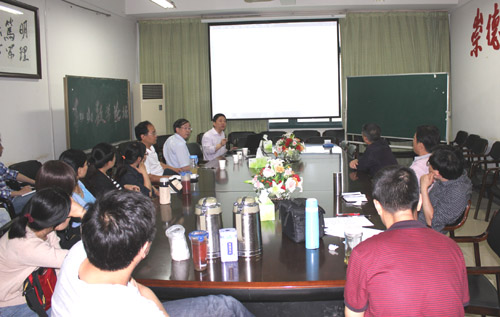 辛周平教授从可压Navier-Stokes方程的研究背景、解的爆破准则及具有大振荡和真空的整体经典解的存在性等几个方面介绍了自己所做的工作及最新研究成果。杨孝平教授通过B超图像处理的数学模型的建立和解决方法,详细地介绍了这方面的基本理论和工作,并指出了以后的发展趋势。报告后,两位教授还与现场师生进行了互动交流。