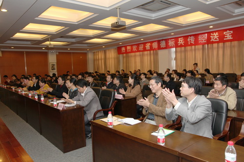 陈勇介绍了来校演讲的三位省师德标兵,他们分别是来自浙江工业大学的毛筱媛老师、浙江师范大学的张根福教授和我校的张立庆教授。陈勇说,教师节前夕,省教育工会隆重表彰了省第二届师德标兵和师德先进个人,他们的感人事迹值得广泛宣传和学习。做育人工作归根结底是用心去做,省教育工会组织师德标兵报告团巡回演讲,就是为了大力弘扬高尚师德。