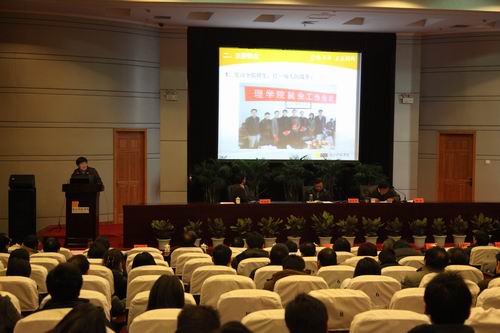 1月13日,学校召开就业工作会议。校党政领导班子成员及正院级巡视员出席会议。校党委书记徐志平讲话。校长杜卫主持会议。全体中层干部、总支分管学生工作专职委员、处长(院长、主任)助理,各二级学院办公室主任(副主任)、教研室(系、所)负责人、各实验(实践)中心主任、全体辅导员、全体毕业班班主任、专业教师代表和学生代表200余人参加会议。