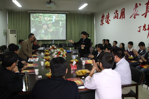 向各位领导、老同志和校友表示了诚挚的欢迎,同时还热情洋溢地向校友们介绍了学院近年来的发展与变化。并希望各位校友能“常回家看看”,多多感受并支持学院的发展与变化。