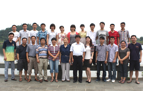 自行设计的校庆纪念品,并合影留念。