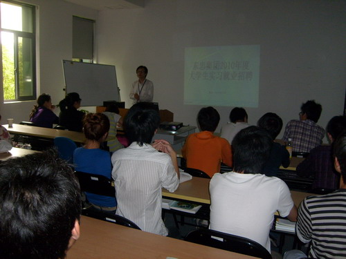 东忠集团人事部部长刘发俊介绍了企业的基本情况,并带领同学参观了公司的工作场所。公司副总黄炜介绍了东忠的人才培养模式和公司2011年的招聘计划。