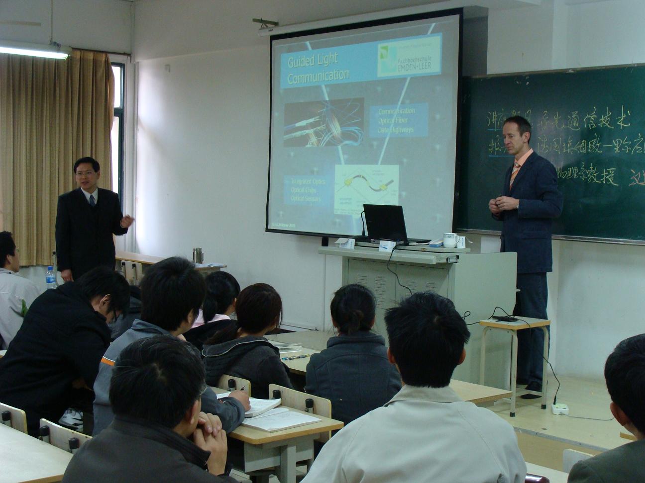 为配合我校举办“2010年德国文化系列活动”, Brückner教授访问期间还应邀为学院的“格致”论坛作了“Guided light communication technology”和“Design and Fabrication of Integrated Optical Waveguides Based on PMM”两场学术报告,向师生介绍了光波导技术及目前进展和自己研究的成果。
