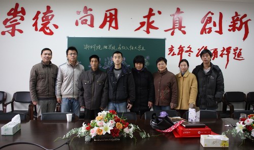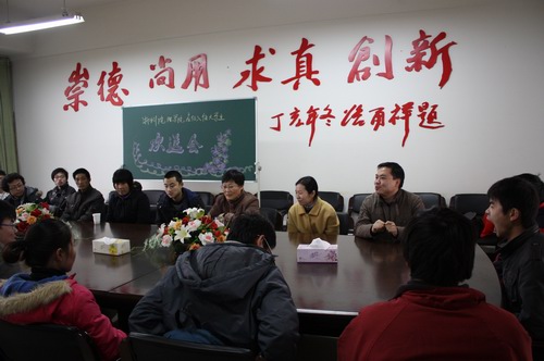 党总支书记苗红亚,物理071班班主任楼静漪,辅导员丁炜、071班全体同学和柳健康家长参加了欢送会,会议由丁炜主持。