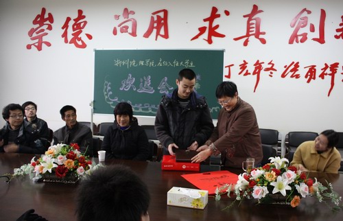 会议结束后,学院和班级分别给柳健康赠送了纪念品,并合影留念。