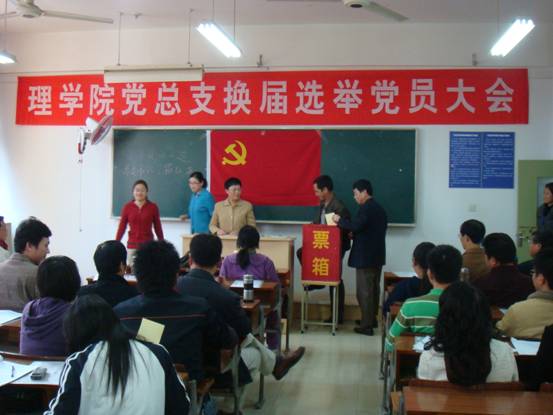 总支部委员会换届选举党员大会于2008年11月13日下午在闻理园隆重举行。会议由学院党总支书记苗红亚主持,校组织部部长李明同志到会并讲话,校监察审计处干事贺凡同志参加了会议。学院正式党员和预备党员全部到会。