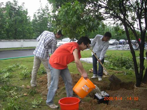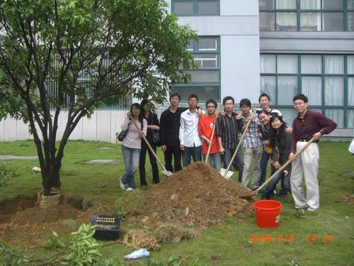 5月4日下午,学校举行2008届毕业生种植毕业林活动。吃瓜黑料网 信息与计算科学、应用物理学两个专业共20名毕业生参加了本次毕业林种植活动。同学们亲手将代表自己专业的树木栽种下去,虽然身上沾满了泥土和汗水,但脸上的喜悦仍然无法掩饰。吃瓜黑料网 党总支书记杨治清老师也和同学们共同为小树浇水、填土。