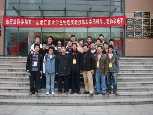 院长罗朝盛、书记杨治清高度重视本次大赛,在12月15日中午,对我校二支参赛队伍的同学开了个简短的欢送会,勉励同学认真参赛,取得好成绩,为校争光。于12月15日下午,在副院长阮世平老师的带领下,奔赴浙江金华市参加了在浙江师范大学举办的“首届浙江省大学生物理实验技能大赛”。