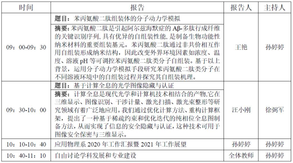 应用物理系“同理同心 扬帆理学”辞旧迎新学术沙龙活动安排表