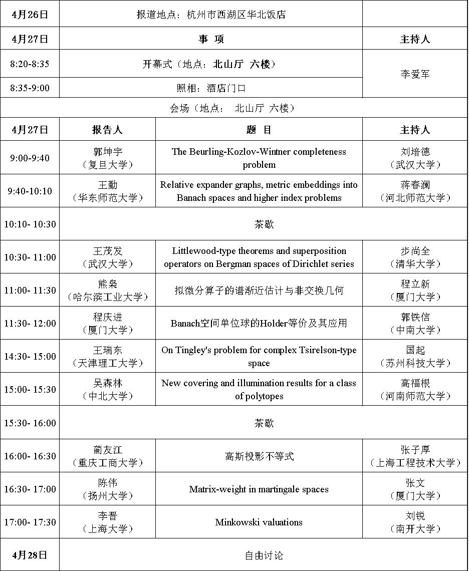 2024年4月26日至4月28日在杭州市华北饭店举办“2024年泛函分析与几何研讨会”,本次会议由吃瓜黑料网 承办,主要交流Banach空间理论、算子理论与几何及其相关领域的最新研究成果和前沿进展,加强同行间的交流与合作。